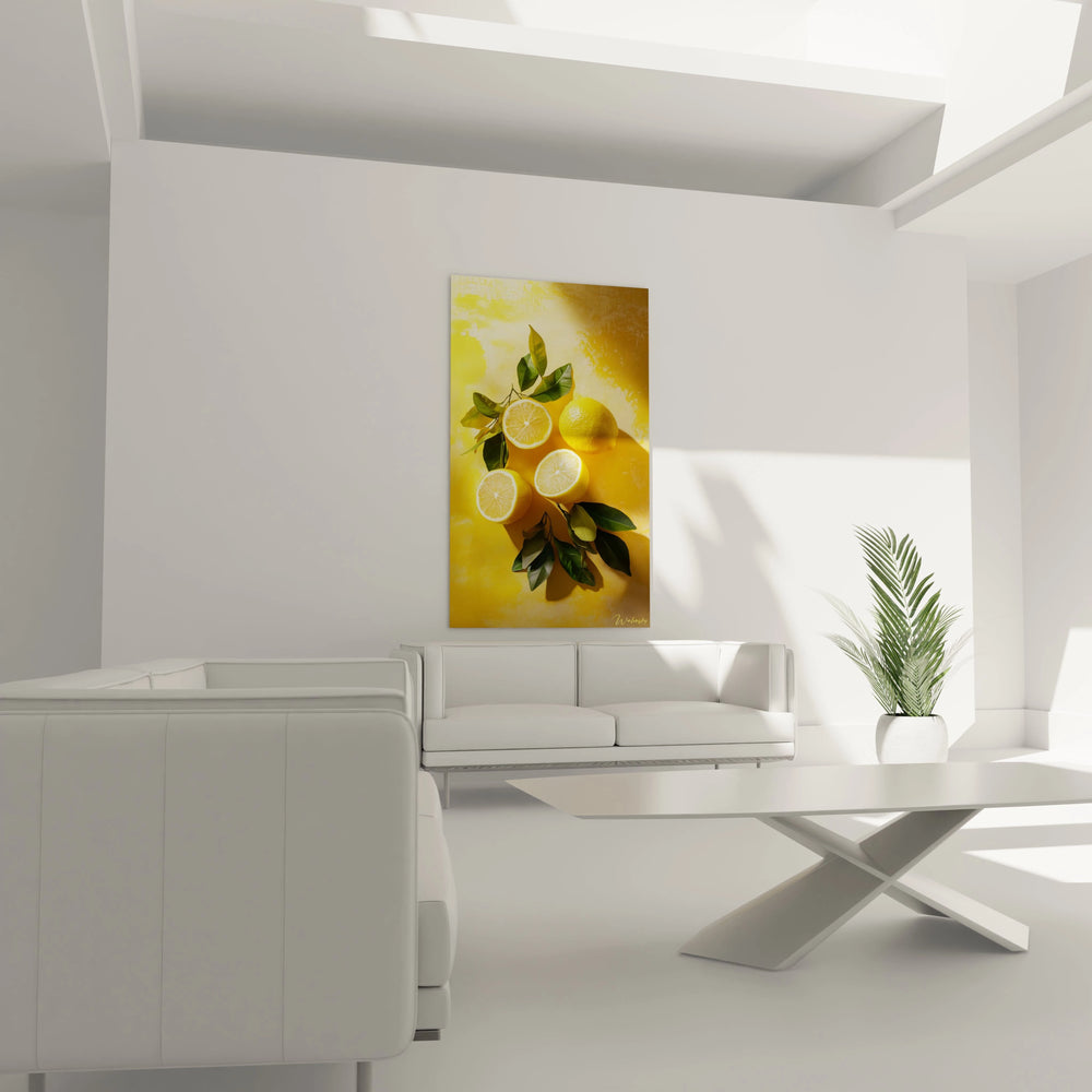 Ce tableau Ă©voque la fraĂźcheur pure et lâoptimisme du sud, oĂč le soleil caresse les fruits mĂ»rs, rĂ©vĂ©lant leurs couleurs vibrantes et leurs textures riches. Avec ses teintes jaunes, vertes et or, cette crĂ©ation joue sur un contraste audacieux qui attire immĂ©diatement le regard et invite Ă la dĂ©tente. Chaque dĂ©tail rĂ©vĂšle la richesse tactile du citron, de son Ă©corce subtilement bosselĂ©e Ă sa chair juteuse, portĂ©e par une lumiĂšre douce qui amplifie ses volumes.