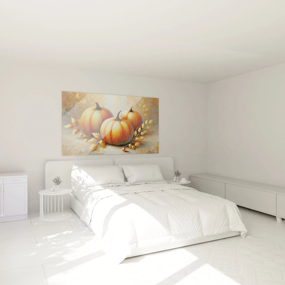 Le Tableau Citrouilles d’Or - Édition Automne Paysage n’est pas seulement une œuvre d’art, c’est un compagnon qui transforme votre habitat en un refuge élégant, où chaque détail raconte une histoire de saison et de partage.