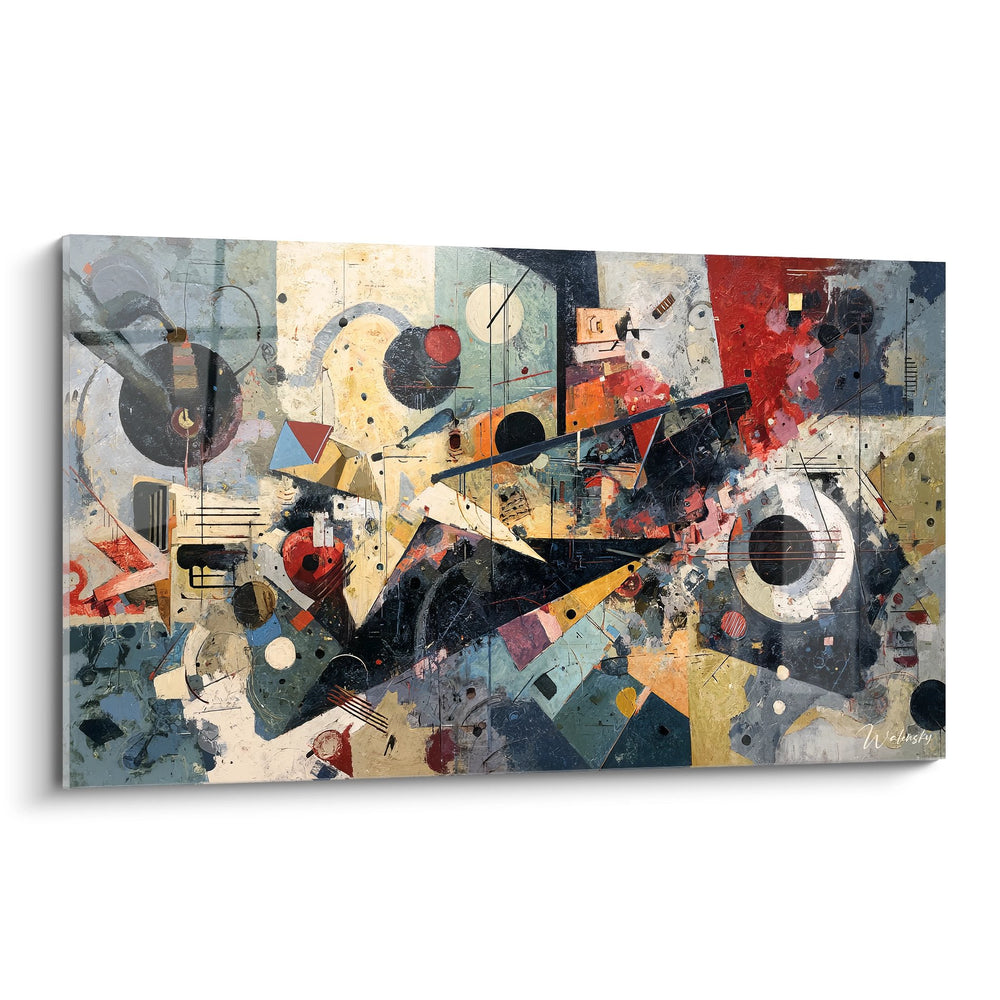 Cette œuvre s'inspire des mouvements avant-gardistes du XXe siècle, particulièrement du constructivisme et de l'abstraction géométrique. Elle évoque les compositions de Kandinsky dans ses périodes Bauhaus, ainsi que les recherches formelles de Mondrian sur l'équilibre des formes. L'esthétique rappelle également les collages dadaïstes par sa richesse compositionnelle et son approche expérimentale de l'espace pictural.