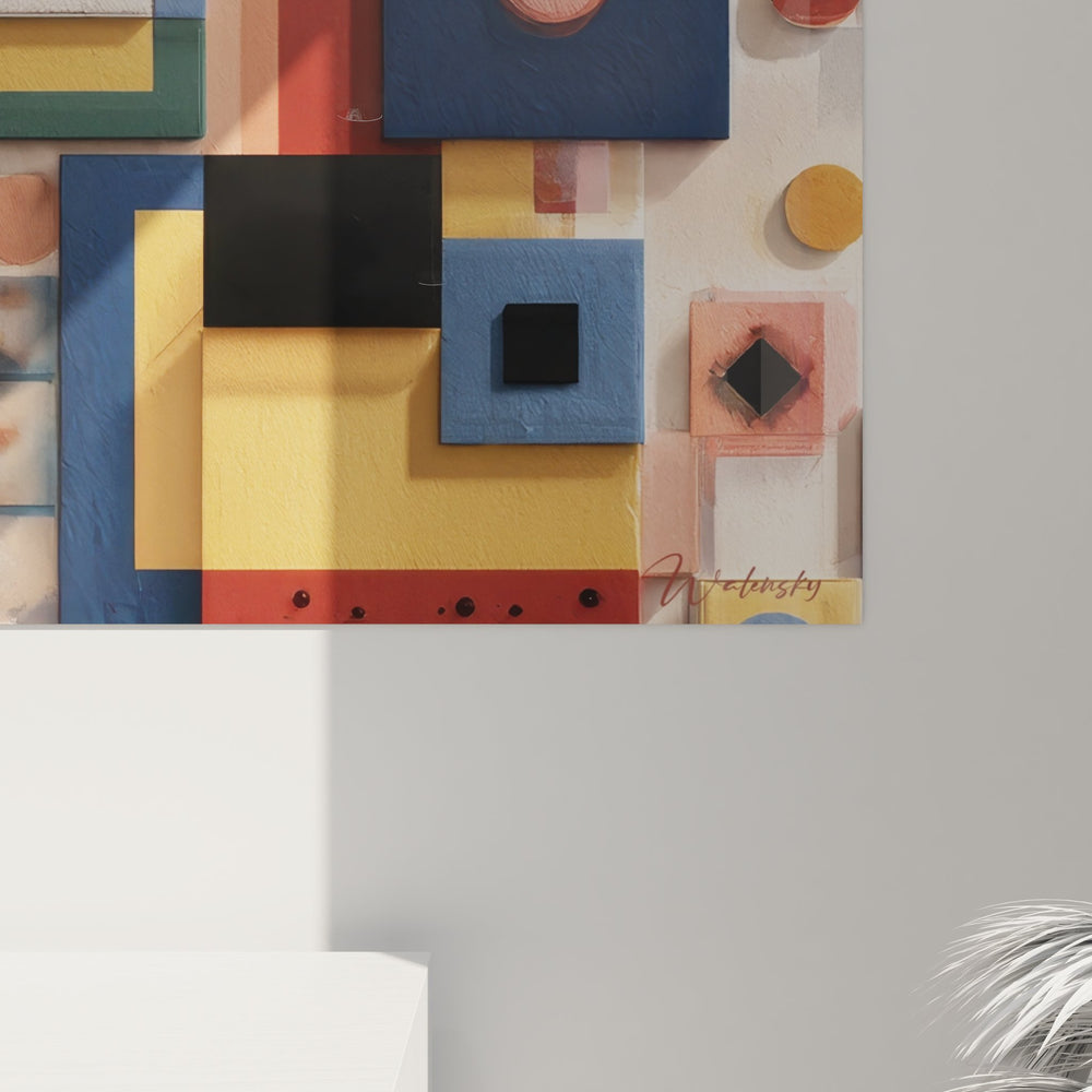 Imaginez-vous dans une pièce baignée de lumière, où les formes géométriques s'entrelacent pour raconter une histoire. Ce tableau est plus qu'une simple décoration; il évoque une harmonie visuelle qui apaise l'esprit et éveille les sens. Chaque élément de cette œuvre a été soigneusement pensé pour apporter équilibre et sérénité, faisant de votre maison un refuge de beauté et de confort.