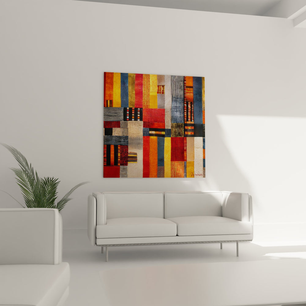 Imaginez ce tableau dans votre espace de vie. Ses motifs géométriques audacieux et ses couleurs vibrantes vous enveloppent dans une atmosphère chaleureuse, transformant chaque mur en une toile vivante. Ce tableau, véritable conversation starter, va non seulement embellir votre pièce mais aussi refléter votre goût raffiné et votre sens de l'esthétique.