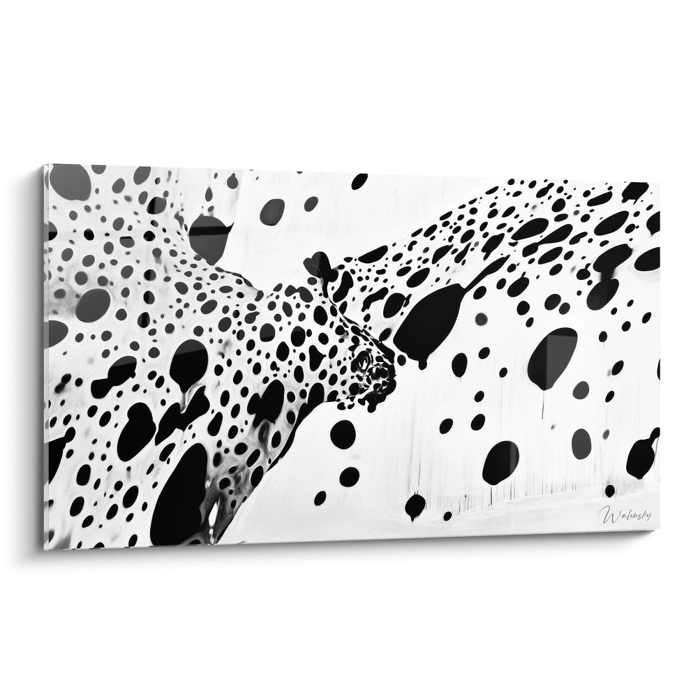 L'unicité de cette œuvre éclaboussures expressionnistes réside dans sa capacité à figer un mouvement perpétuel dans une composition parfaitement équilibrée. Chaque projection suit sa propre logique physique tout en participant à l'harmonie globale de l'ensemble. Les détails impossibles à dupliquer incluent la forme exacte de chaque éclaboussure, leur répartition spatiale unique et leurs interactions subtiles entre elles. Cette art mural éclaboussures contemporaines se distingue par son format horizontal qui amplifie la sensation d'expansion et de mouvement latéral. L'aspect le plus remarquable reste cette tension permanente entre chaos apparent et ordre sous-jacent qui caractérise les plus grandes œuvres de l'art gestuel contemporain.