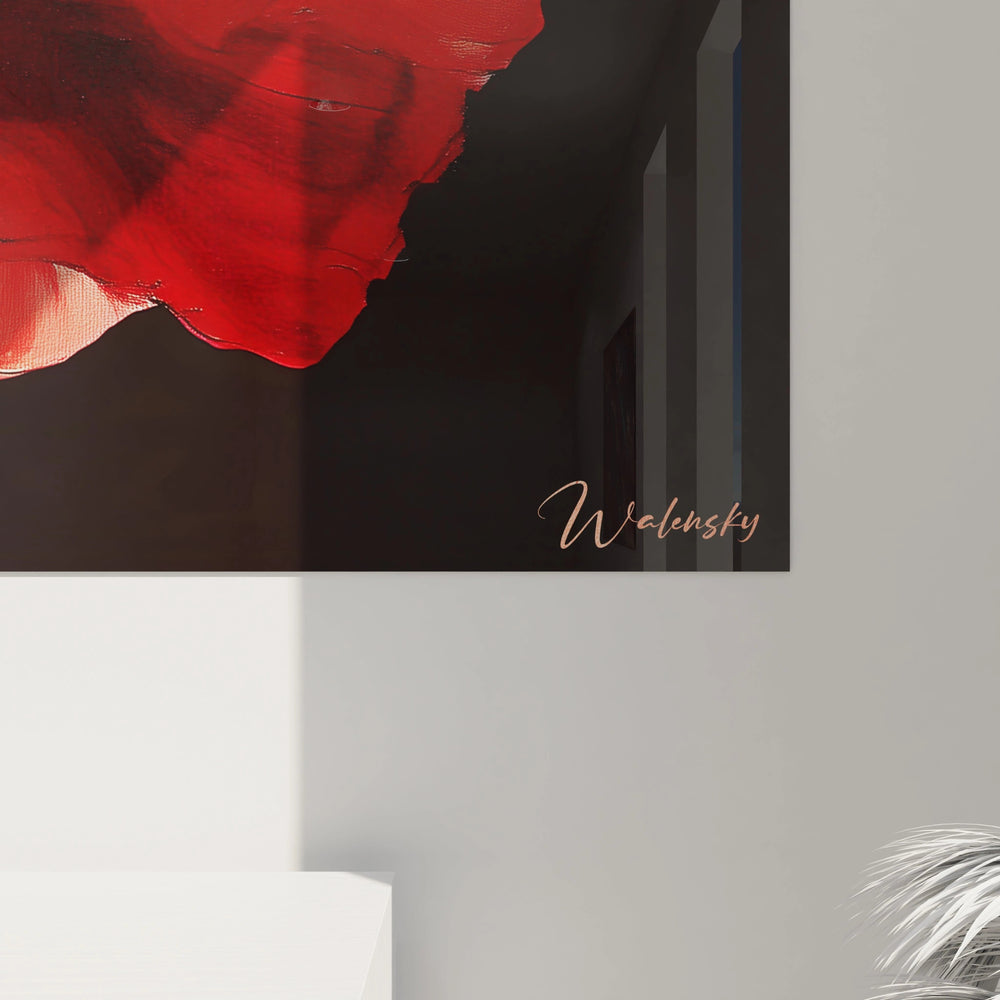Le fond sombre, mystĂ©rieux, fait ressortir le rouge intense du coquelicot, crĂ©ant un spectacle visuel envoĂ»tant. Les nuances de noir et de beige ajoutent de la profondeur et du relief, donnant Ă la fleur un Ă©clat presque incandescent comme si elle Ă©tait prĂȘte Ă sâanimer. Ce style semi-abstrait donne au tableau un caractĂšre sophistiquĂ© qui sâintĂšgre harmonieusement Ă une dĂ©coration contemporaine ou naturelle.
