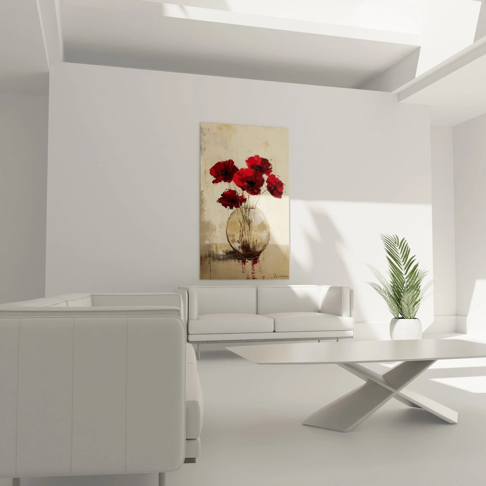Cette crĂ©ation unique mĂȘle Ă la fois dĂ©licatesse et intensitĂ©. Le style semi-abstrait dynamique apporte du relief et du mouvement aux fleurs, comme si elles allaient sâĂ©panouir sous vos yeux. Le contraste harmonieux entre le rouge profond des coquelicots et les tons beige et marron qui enveloppent leur fond crĂ©e une ambiance chaleureuse et authentique, parfaite pour infuser votre espace dâune Ă©lĂ©gance naturelle.