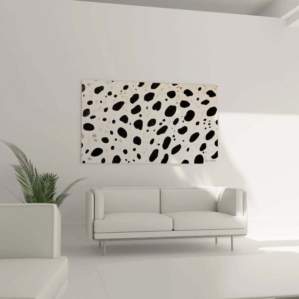 Plongez dans l’élégance monochrome avec le Tableau Cosmos Dalmatien - édition tacheté noir et blanc, une œuvre qui transcende la décoration pour devenir un véritable dialogue visuel. Cette création sublime enveloppe votre espace d’une aura sophistiquée, où chaque détail se révèle comme un hommage délicat au contraste et à l’équilibre.