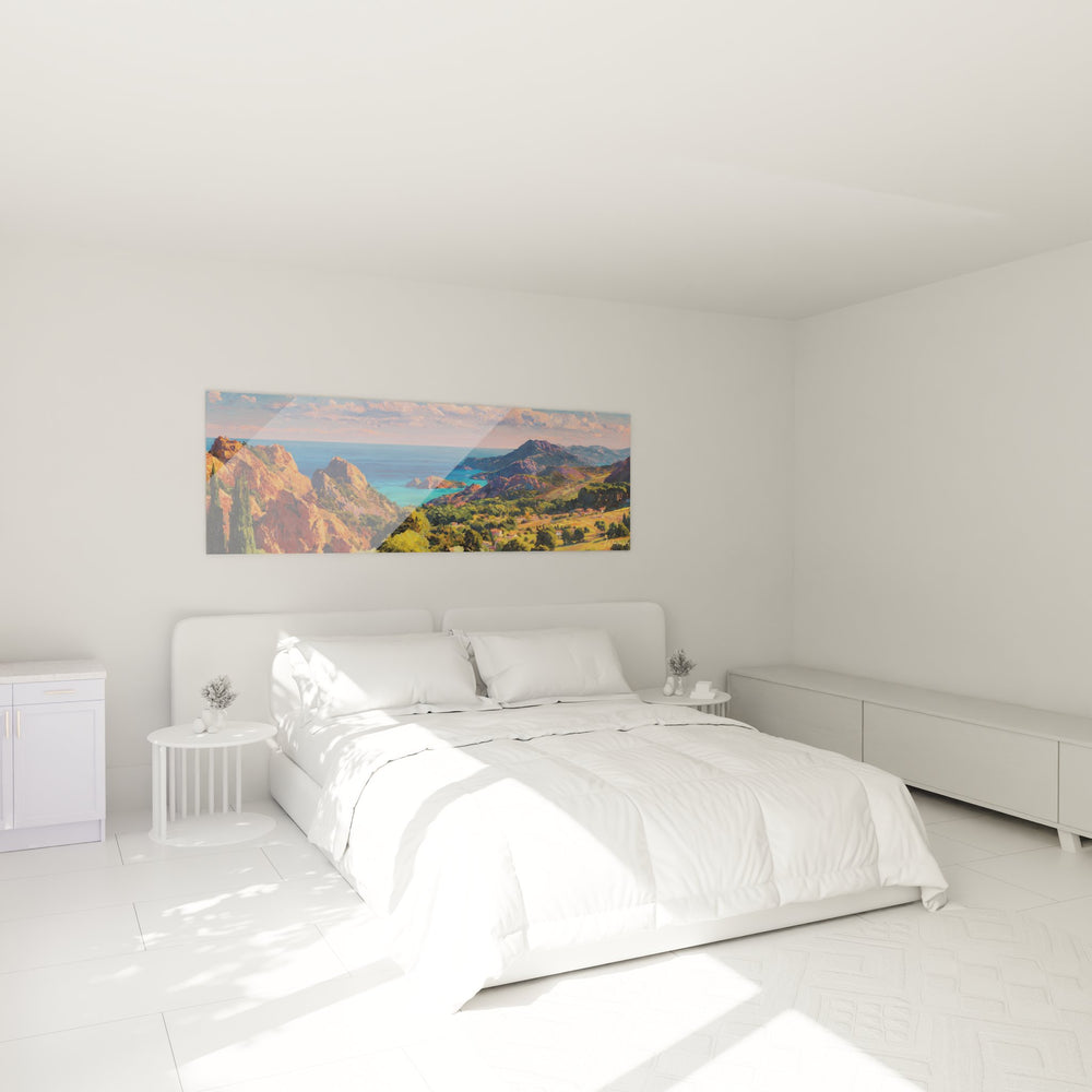 Tags : tableau côte méditerranéenne, art maritime panoramique, décoration bord de mer, paysage côtier moderne, toile mer turquoise