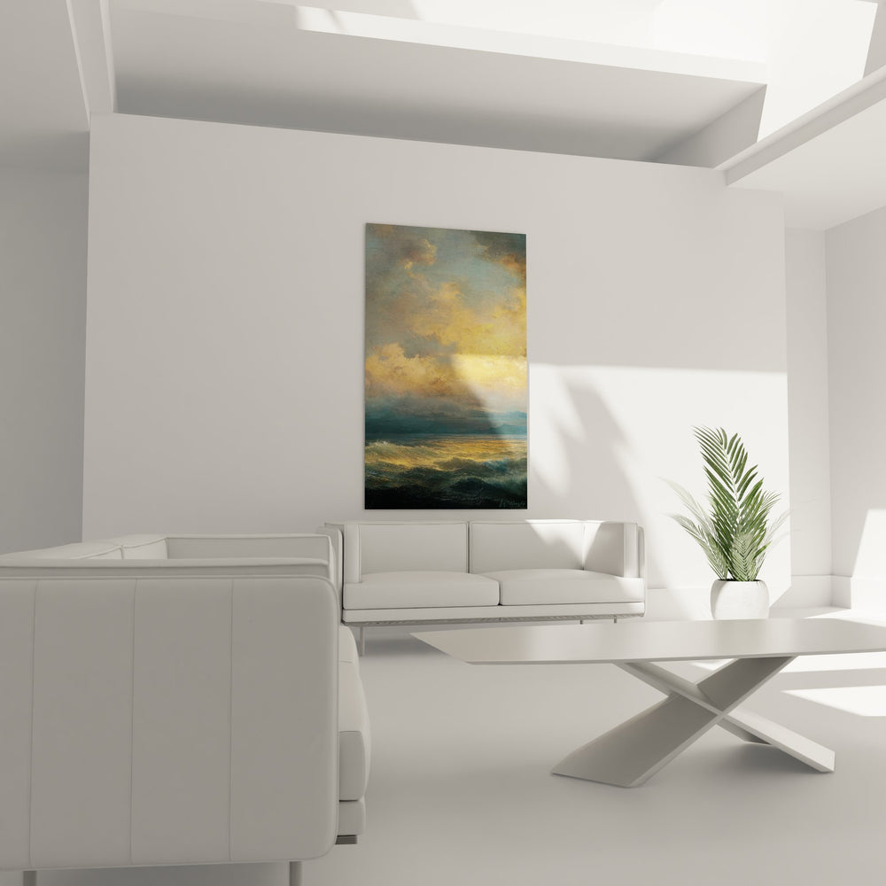 Ne laissez pas passer l'opportunité d’ajouter cette œuvre spectaculaire à votre collection. Offrez-vous le luxe d’un moment d’évasion dans votre propre salon et faites de votre intérieur un havre de sérénité. Commandez dès maintenant votre "Coucher de soleil sur mer agitée - Tempête dorée" et transformez votre espace en un chef-d'œuvre intemporel.