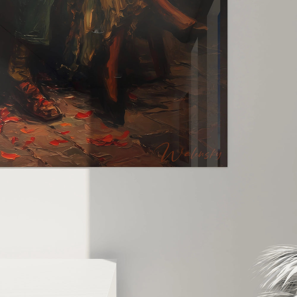 Cette décoration murale romantique utilise les contrastes chaud-froid pour créer une profondeur émotionnelle saisissante, où chaque nuance contribue à l'atmosphère passionnée de la scène.