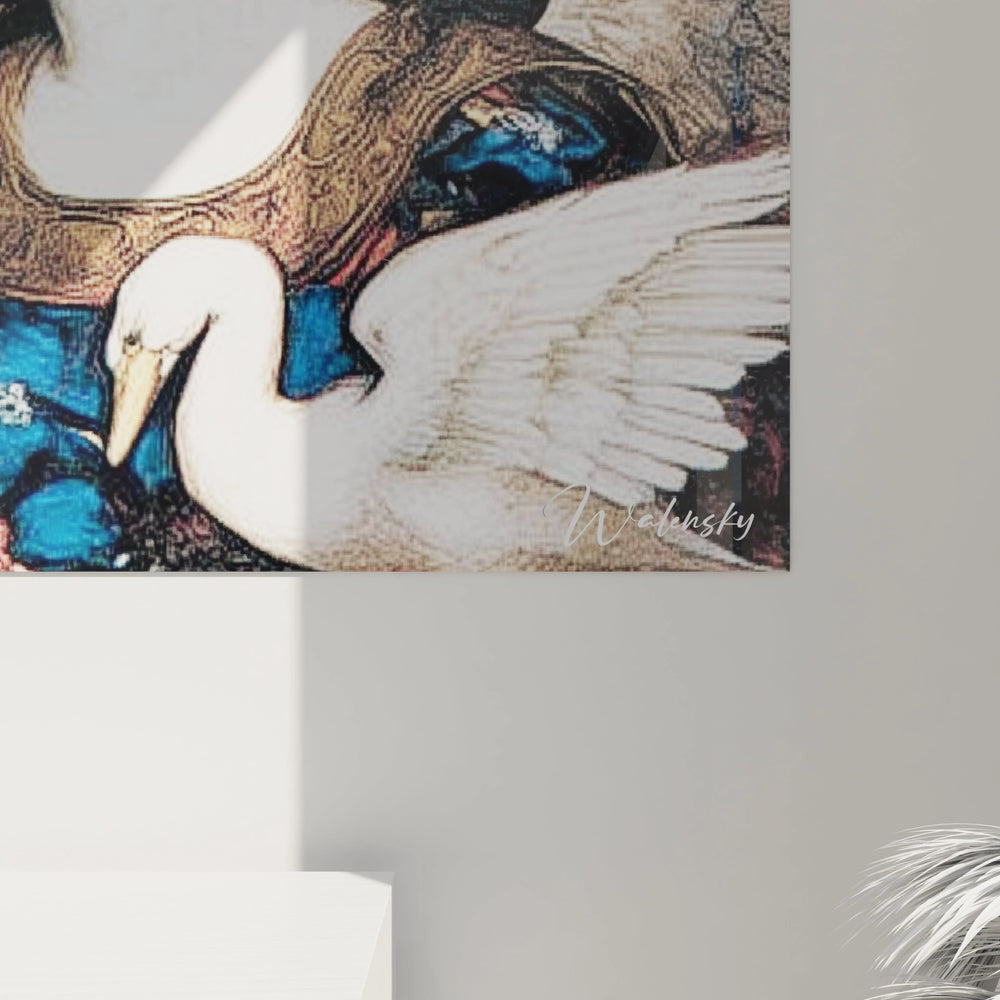 Imaginez-vous dans une pièce baignée de lumière, où chaque regard sur ce tableau vous transporte dans un jardin secret où les cygnes nagent gracieusement sur des eaux miroitantes. La délicatesse des courbes et la fluidité des formes évoquent une romance éternelle, ajoutant une touche poétique à votre décoration intérieure.