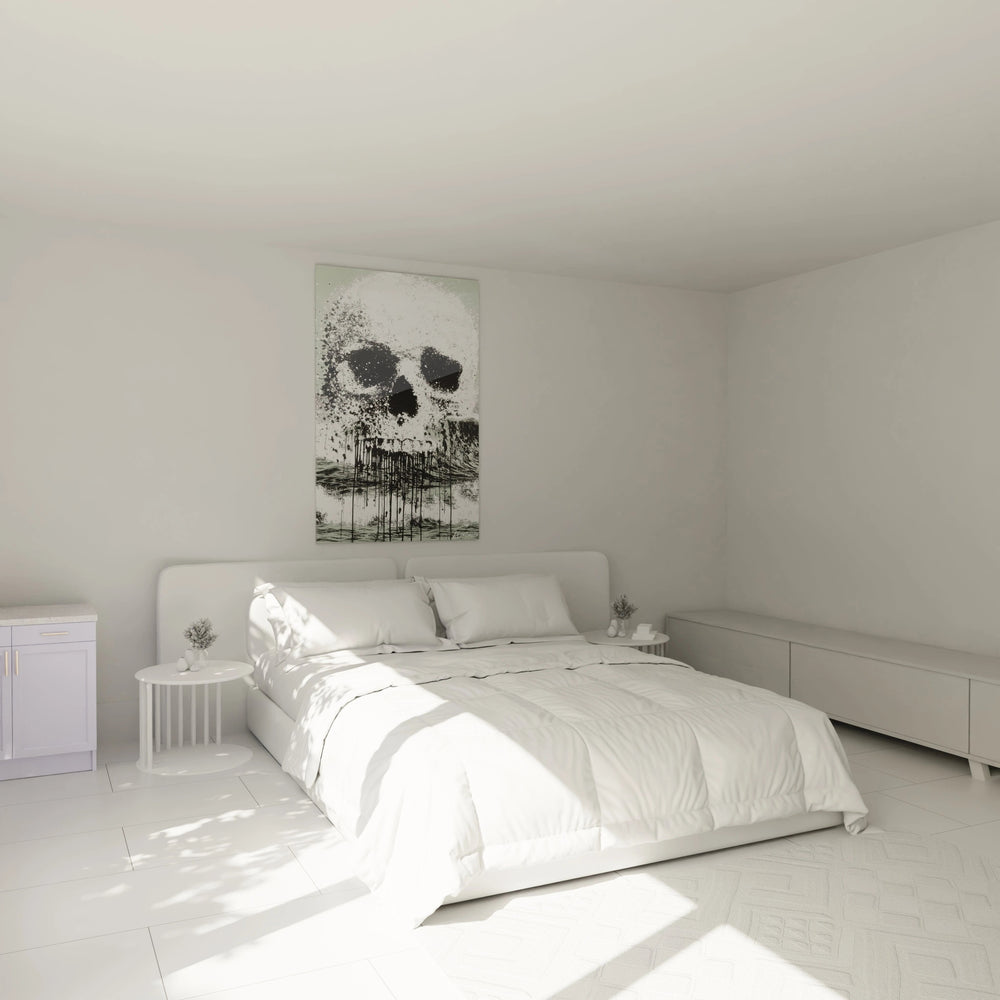 Chaque coup de pinceau sur cette toile raconte une narration profonde et évocatrice. Le crâne, symbole intemporel de la mortalité, est avec magnificence sculpté dans des nuances de tristesse, évoquant des sentiments de mélancolie mais également d'acceptation. Cette œuvre insuffle une atmosphère unique, transformatrice et hypnotique dans votre intérieur, rendant chaque moment passé à ses côtés encore plus précieux.