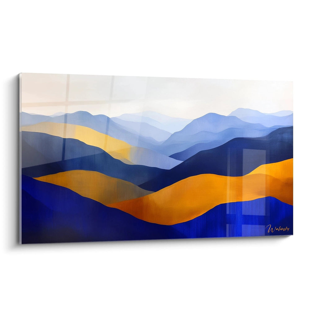 Ce tableau montagne abstrait présente une vision contemporaine et stylisée d'un paysage montagneux aux formes fluides. L'œuvre se distingue par sa représentation géométrique des reliefs, où les montagnes deviennent des formes ondulantes et superposées. La première impression révèle un tableau montagne moderne coloré qui transcende la réalité pour créer une atmosphère onirique. Les couches montagneuses s'entremêlent dans un jeu de transparences et d'opacités, créant une profondeur visuelle saisissante. Cette décoration murale montagne contemporaine évoque immédiatement une sensation d'évasion et de sérénité, transformant l'espace par sa présence apaisante et sa modernité assumée.