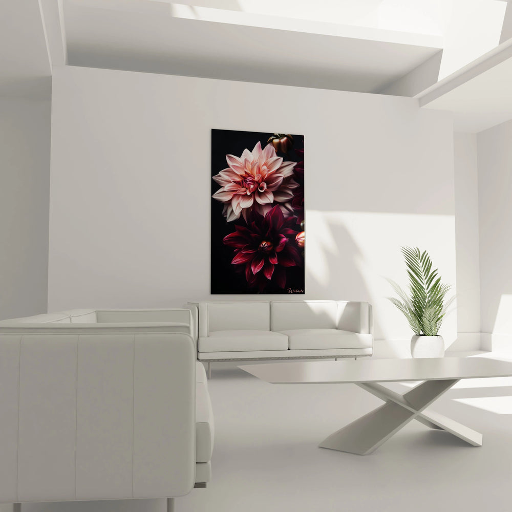 Associez ce tableau à des meubles aux tons sombres comme le bois profond ou le métal pour créer un contraste contemporain tout en élégance. Ajoutez des touches d’accessoires aux nuances assorties — coussins, vases ou objets décoratifs en rose et rouge — et complétez l’ensemble avec un éclairage tamisé pour révéler toute la richesse des couleurs et la texture soyeuse des pétales. Pour un effet encore plus prestigieux, intégrez discrètement des accents métalliques dorés ou argentés qui sublimeront son éclat intensément chic.