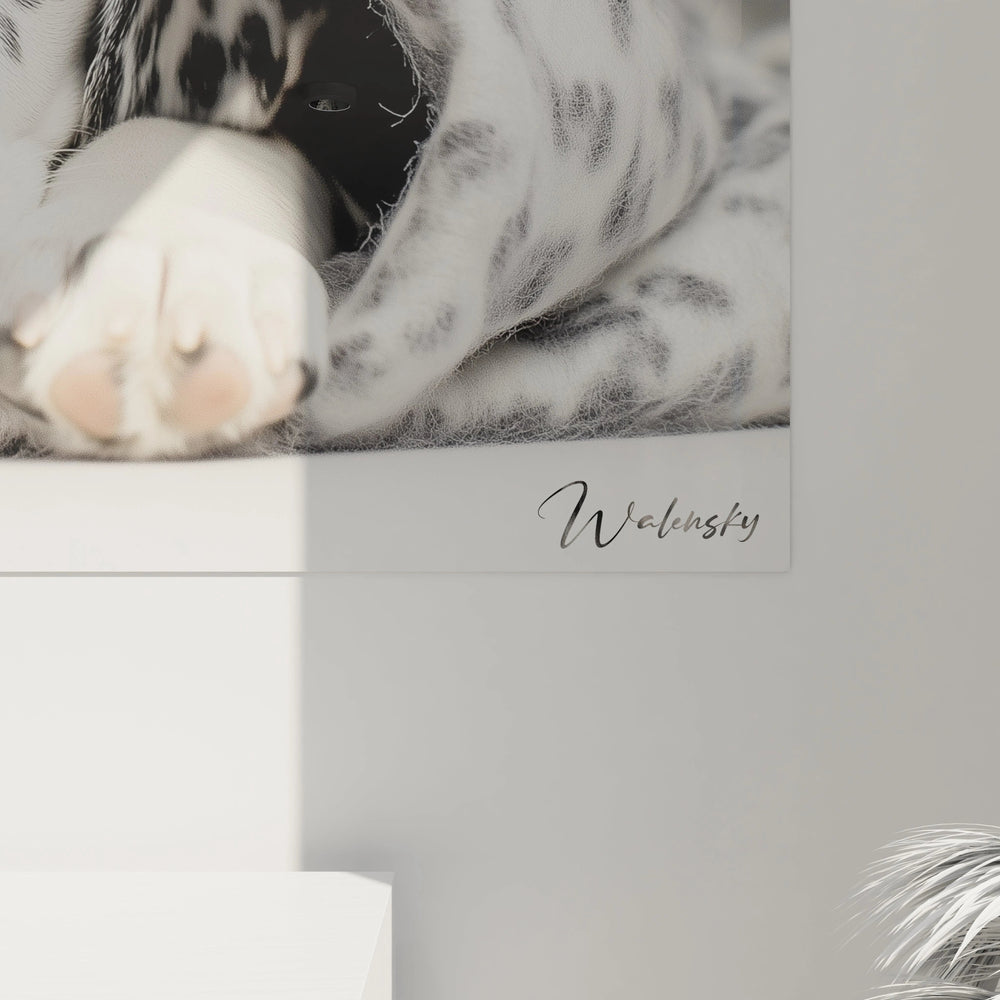 Offrez à votre espace une pièce d’exception avec ce Tableau dalmatien N°2, une œuvre raffinée qui sublime avec délicatesse la beauté singulière du dalmatien. Imaginez ce chiot tendre, lové et enveloppé d’une couverture aux motifs assortis, un instant capturé avec une intensité qui va bien au-delà de l’image.