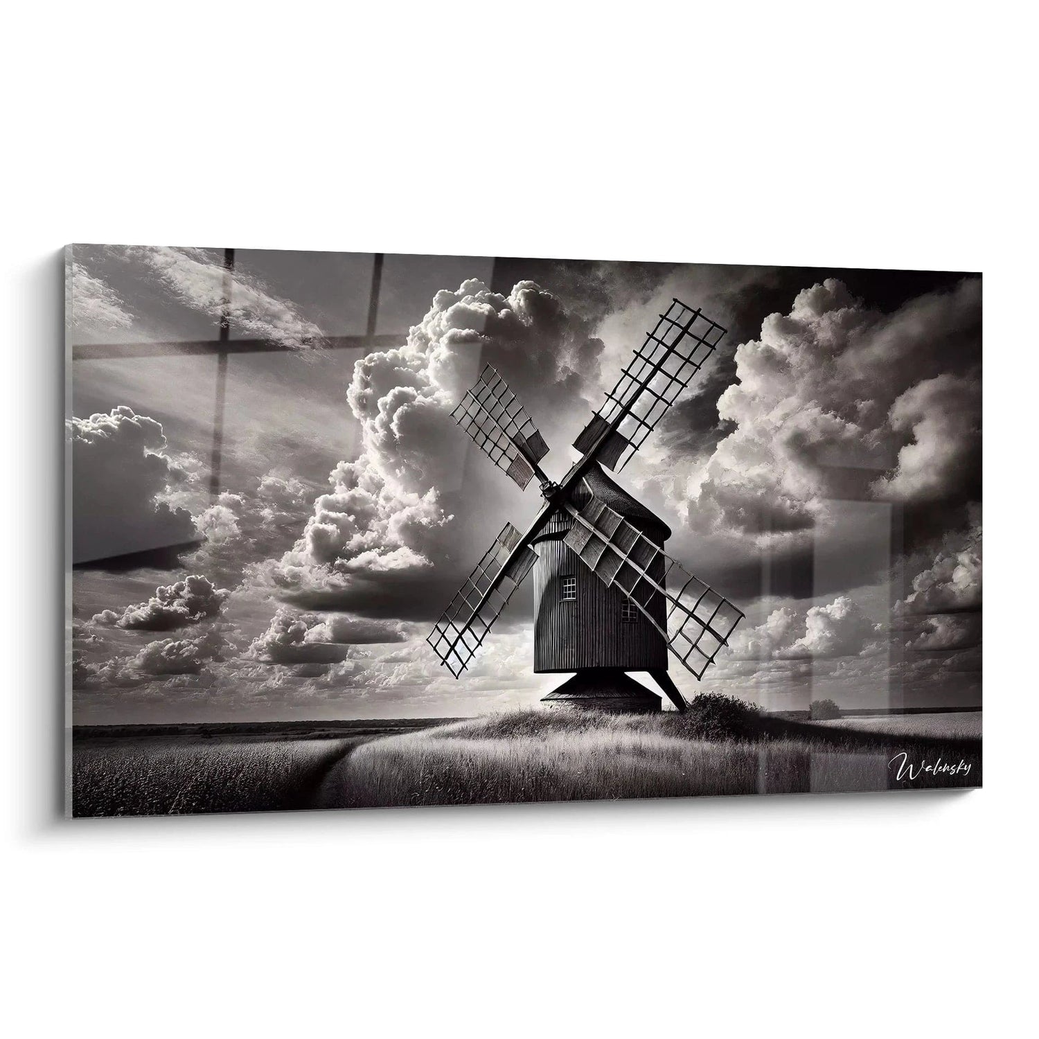 Plongez dans une atmosphère singulière où le temps semble suspendu grâce au Tableau Danse du Vent - Edition Black & White. Cette création saisissante vous invite à une expérience visuelle intense qui mêle le calme majestueux du moulin et le tumulte vibrant des nuages en mouvement. Ici, chaque nuance de noir, de gris et de blanc dévoile une histoire profonde, un hommage à la nature et à la résilience intemporelle.