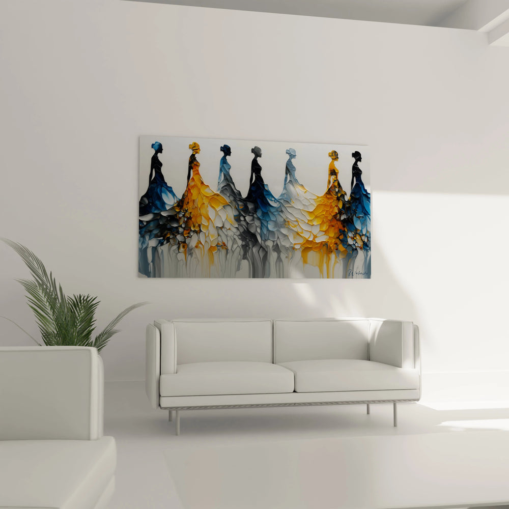 Chaque tableau est un récit unique, capturant l'essence de la mode et de l'art au travers d'un jeu de couleurs et de formes qui évoque la fluidité de la haute couture. Vous serez enthousiasmé par les nuances délicates qui s’entrelacent avec élégance, créant une atmosphère de sophistication inégalée. Voici ce qui rend ce tableau indispensable :
