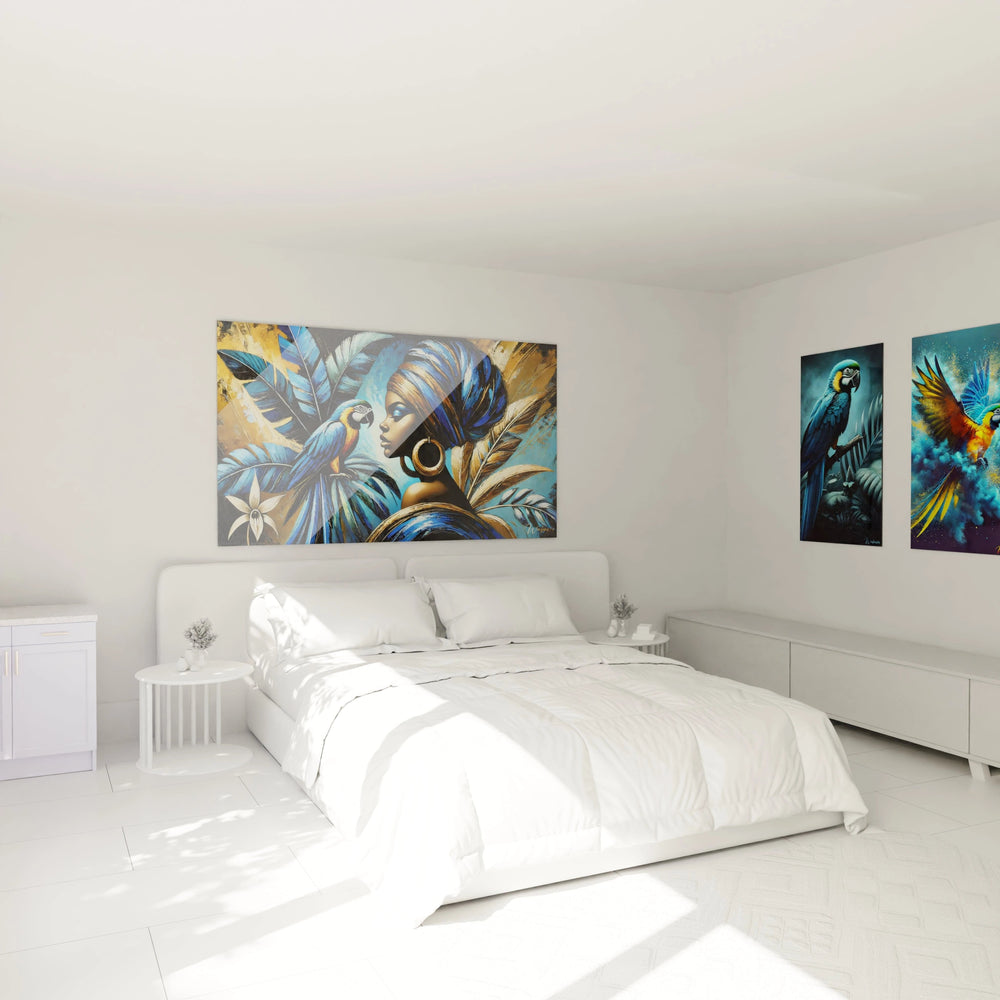 Imaginez un voyage sensoriel où la force de la nature rencontre l’élégance humaine dans un équilibre parfait. Le Tableau Dialogue d'Or et de Bleu - Edition Perroquet Animaux vous invite à plonger dans un univers où la lumière dorée caresse un plumage éclatant et où le bleu profond évoque la sérénité des cieux tropicaux.