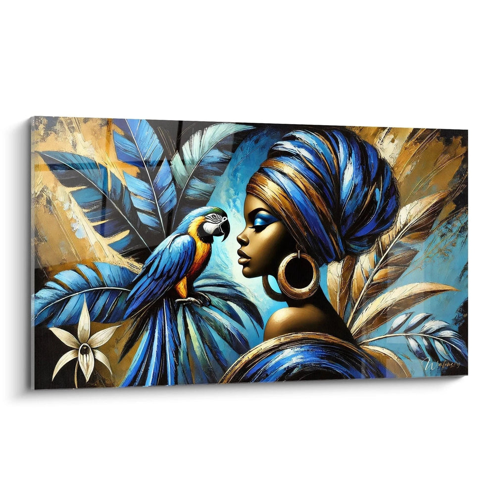 Inspiré par la richesse culturelle africano-tropicale, ce tableau célèbre la majesté du perroquet tout en rendant hommage à la féminité puissante et sereine. Il s’inscrit dans la continuité des grands portraits classiques, revisitée à travers un prisme contemporain et luxuriant.