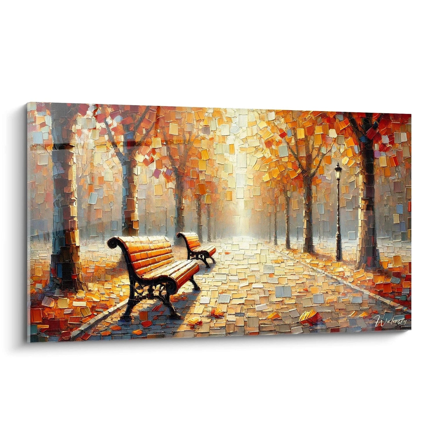 Plongez au cœur de l’automne avec ce Tableau Douceur Automnale - Édition Automne Paysage, une œuvre qui capture la magie silencieuse de cette saison empreinte de mélancolie et de chaleur. Imaginez-vous déambulant doucement dans une allée bordée d'arbres aux feuilles flamboyantes, la lumière caressant délicatement chaque contour, et les bancs vides invitant à la pause et à la rêverie… Ce tableau vous offre ce havre de paix, suspendu hors du temps.