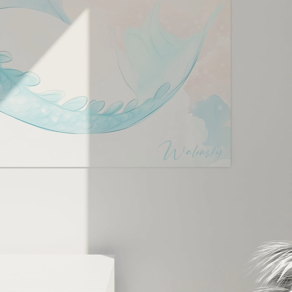 Le subtil jeu de lumières et la texture fine des écailles contribuent à une ambiance aérienne et légère, comme si le dragon capturait les éclats d’un ciel enchanté pour les refléter dans votre intérieur.