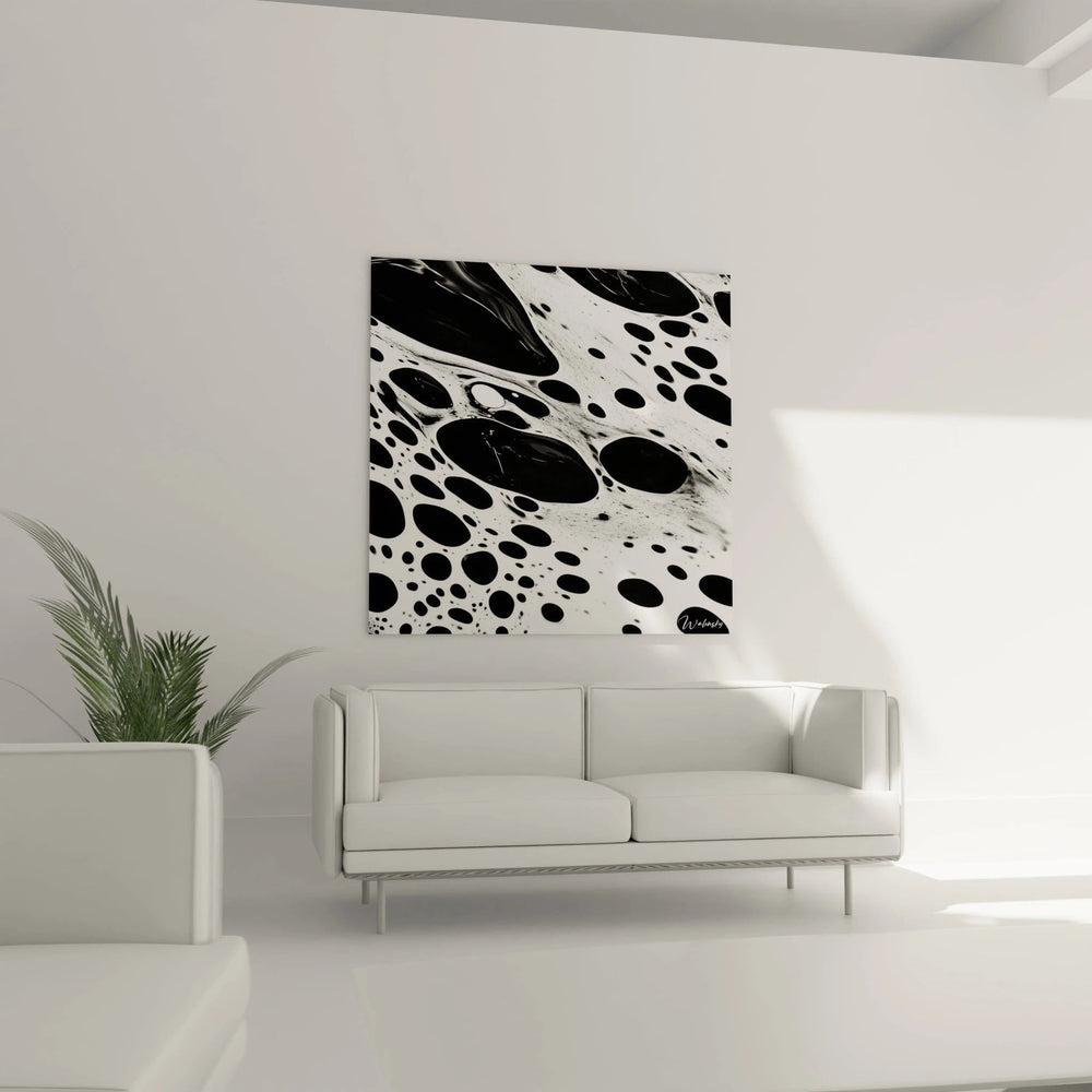 Les motifs tachetés, empreints de mystère, évoquent à la fois l’infiniment petit et l’infiniment grand, révélant une dualité puissante qui stimule l’imagination. Chaque nuance de noir et de blanc semble vivre sous vos yeux, comme une danse silencieuse où la matière et le vide s’entrelacent. En accueillant ce tableau, vous invitez une œuvre qui raconte une histoire sans mots, apportant une dimension poétique à votre cadre de vie.