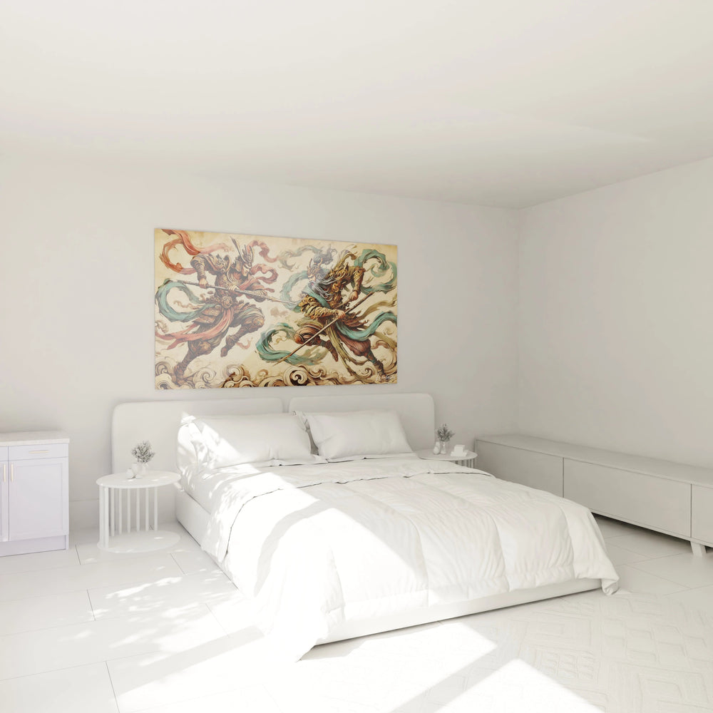 Offrez à votre espace de vie une pièce d’exception avec ce Tableau Duel des Immortels - Édition Peinture Chinoise Asia, une œuvre qui transcende le temps et invite à une expérience visuelle saisissante. Imprégné de l’esprit millénaire des légendes martiales chinoises, ce tableau incarne la puissance et la grâce des guerriers légendaires, déployant une histoire aussi intense que captivante.
