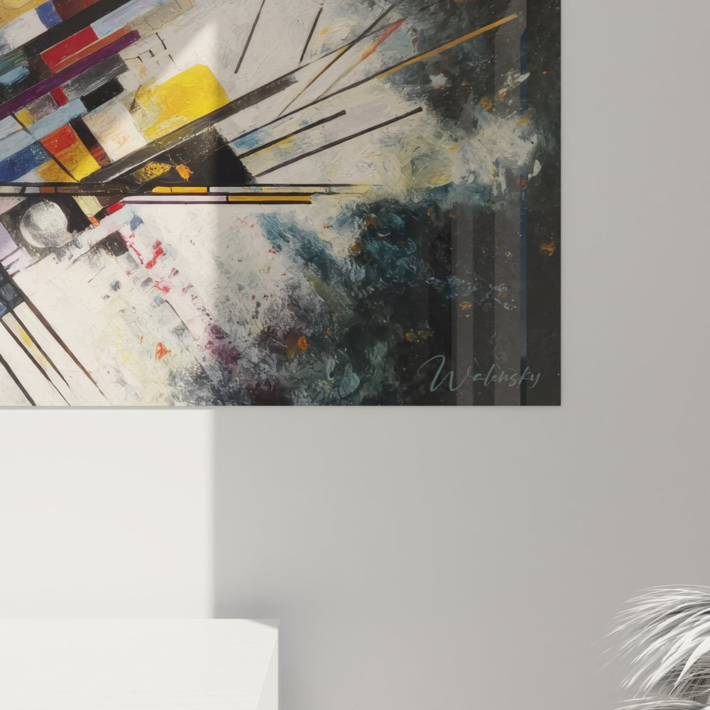 Cette œuvre unique se distingue par ses formes géométriques audacieuses et ses couleurs éclatantes qui semblent danser sous les lumières changeantes de votre pièce. Chaque détail est soigneusement pensé pour vous plonger dans un monde de dynamisme et d'énergie visuelle. Que vous le placiez dans votre salon, votre bureau ou même votre chambre à coucher, il ne manquera pas d’attirer tous les regards et de susciter l’admiration de vos invités.
