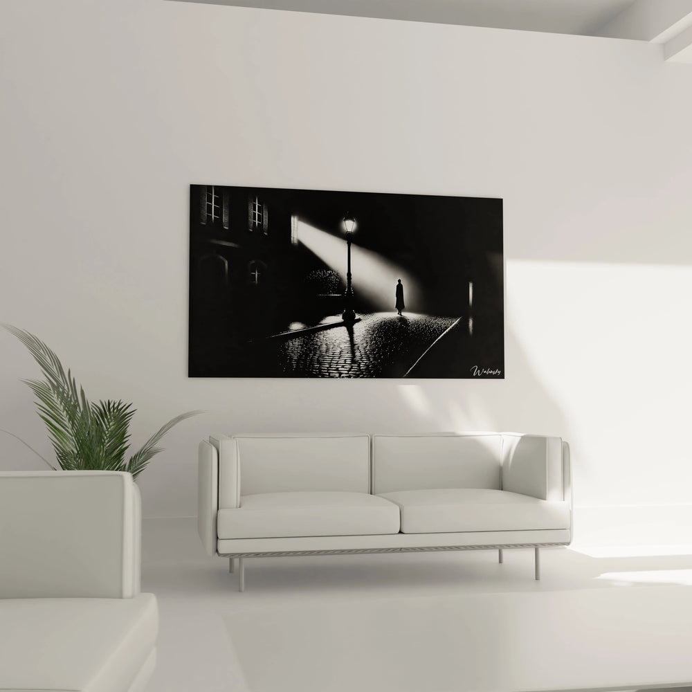 Inspiré par l’univers des films noirs et la magie des lumières nocturnes, ce tableau incarne la dualité de nos émotions. Il évoque ce moment précieux où le silence devient une force et où chaque ombre dissimule ses secrets. Il fascine autant les amateurs d’art que les passionnés de décoration raffinée, séduits par son équilibre entre simplicité et profondeur.