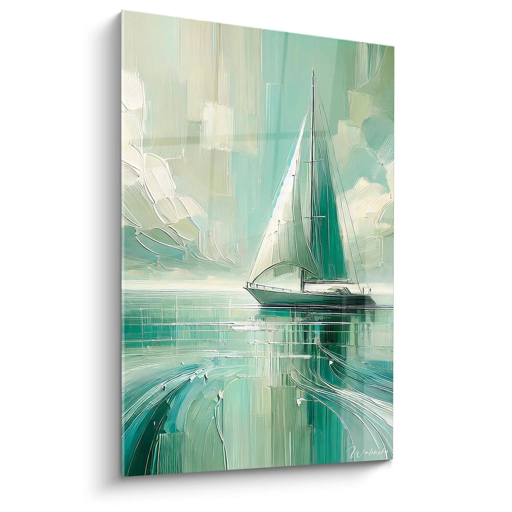 Imaginez-vous au cĆur dâune mer tranquille, bercĂ© par la danse lĂ©gĂšre des voiles et la caresse apaisante des vagues. Ce tableau vous transporte dans cette pause prĂ©cieuse, oĂč la puretĂ© du paysage minimaliste Ă©voque la douceur dâun matin ensoleillĂ© au bord de lâocĂ©an. Lâassociation des verts, beiges et blancs crĂ©e une ambiance aussi fraĂźche que raffinĂ©e, invitant Ă la dĂ©tente et Ă la contemplation.
