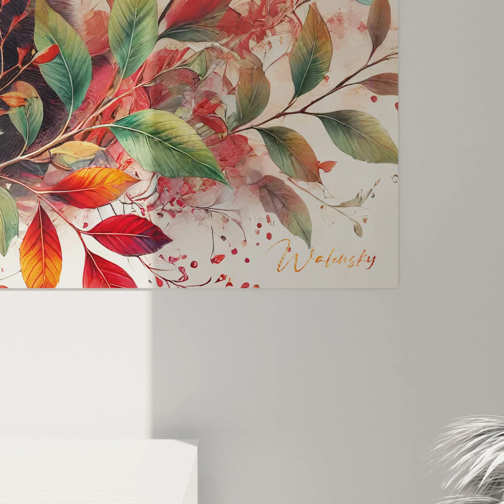 Imaginez un instant où le temps s’arrête, le regard posé sur ce tableau qui capte l’essence d’un moment précieux. Le panda roux se niche doucement parmi un bouquet de feuilles rougeoyantes, vertes et beige, symboles du cycle éternel des saisons. Ces couleurs vibrantes, à la fois apaisantes et réconfortantes, créent un équilibre visuel qui illumine votre pièce tout en invitant à la sérénité.
