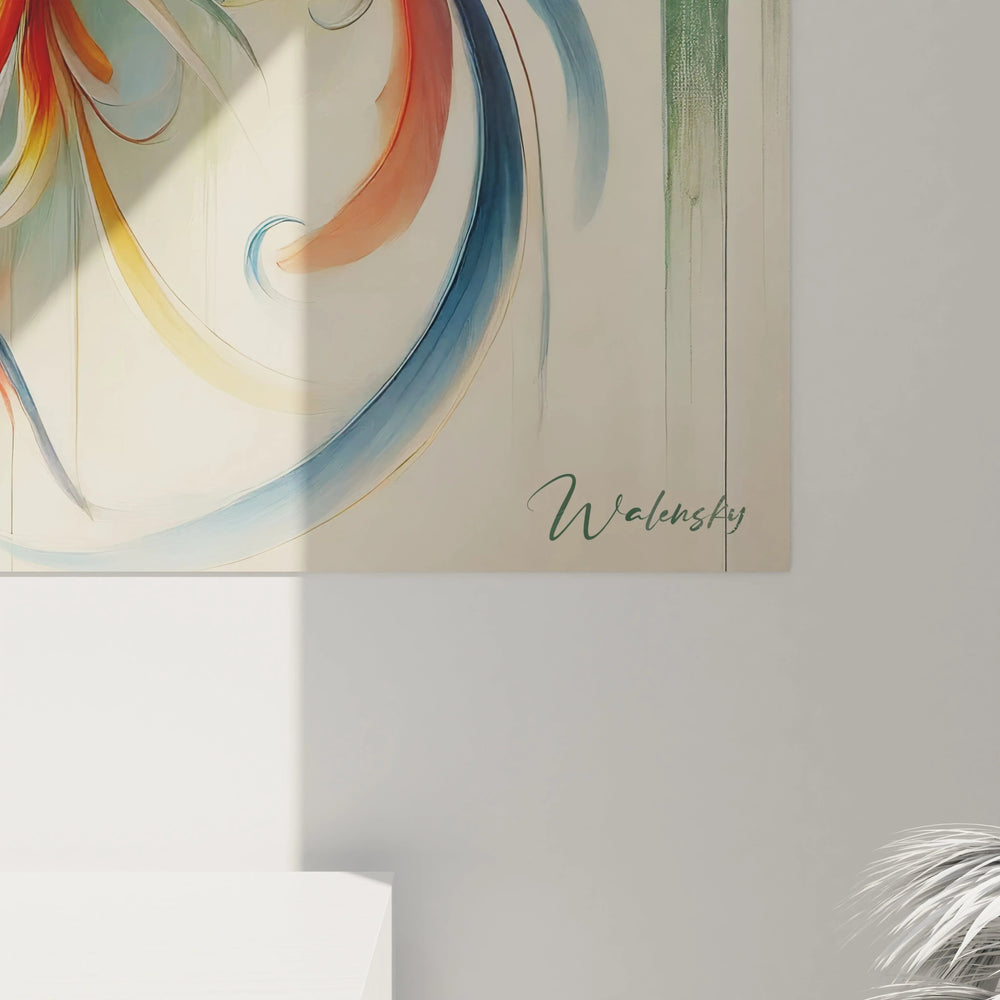 Que ce soit dans un salon baigné de lumière, un bureau propice à la créativité ou une chambre à l’ambiance paisible, ce tableau devient rapidement le point focal de votre décor. Ses couleurs chatoyantes et son style aérien invitent à un voyage intérieur, tout en réveillant une sensation de liberté et de bien-être.