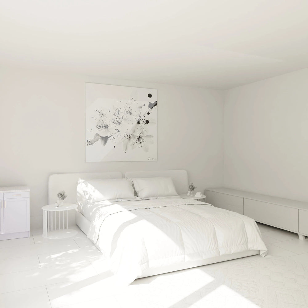 Grâce à son palette strictement en noir et blanc, cette œuvre joue sur la simplicité sophistiquée pour créer une présence graphique marquante, sans jamais agresser l’espace. Chaque éclat lumineux et chaque ombre dense s’entrelacent dans une chorégraphie visuelle qui sublime aussi bien les ambiances minimalistes que les intérieurs modernes les plus élaborés.