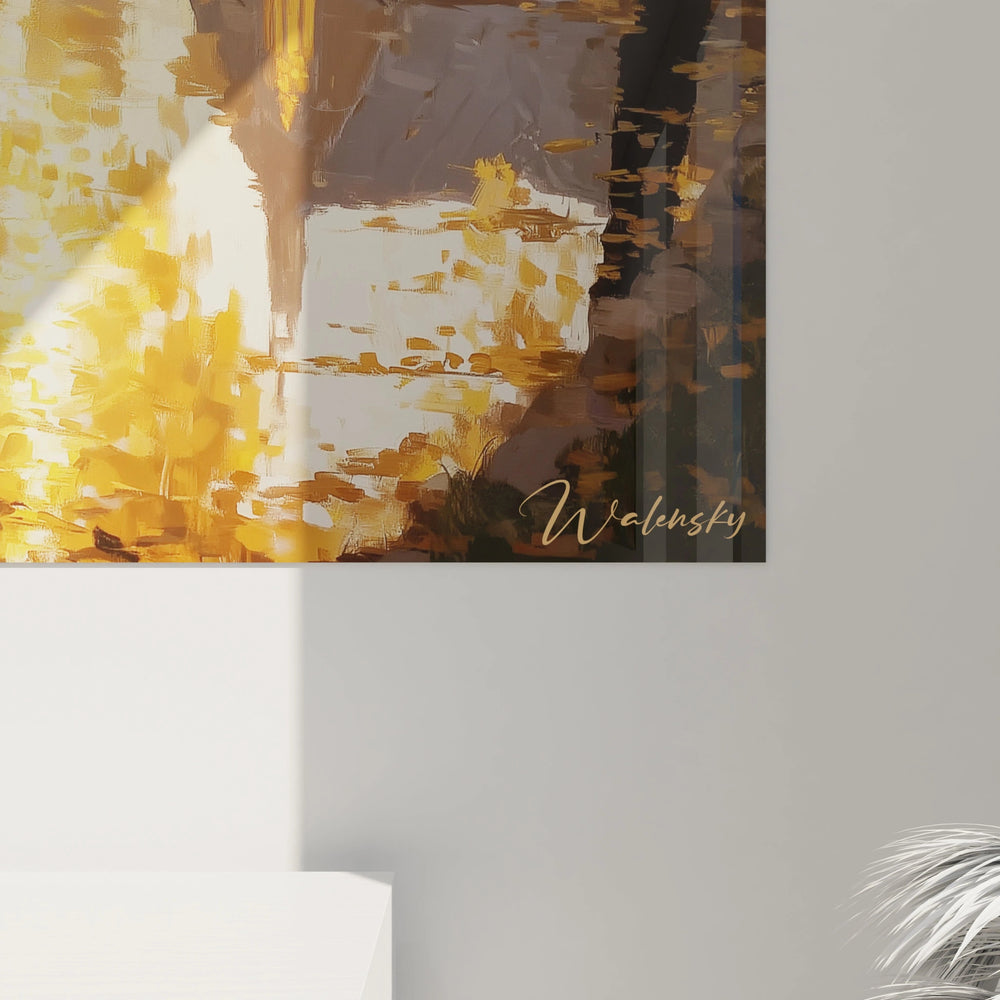 Ce tableau n’est pas simplement une pièce décorative ; il représente l'harmonie parfaite entre la beauté architecturale et la chaleur des couleurs automnales. Les rayons de lumière qui se reflètent sur ses surfaces créent une atmosphère apaisante, invitant à la réflexion et à la méditation. Imaginez un doux rayon de soleil illuminant votre salon, offrant ainsi une ambiance chaleureuse et réconfortante à vos moments de détente.