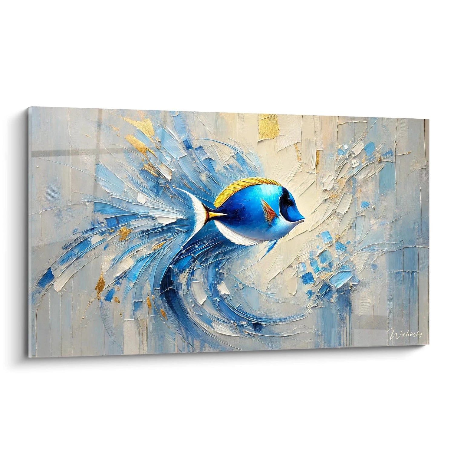 Née de la fascination pour l’élégance des poissons tropicaux et des jeux de lumière sous-marins, cette création artistique célèbre la fragile beauté des mondes aquatiques. Inspirée par les mouvements impressionnistes et la force visuelle des grandes vagues japonaises, elle vous offre une expérience visuelle unique qui transcende le simple élément décoratif pour devenir une source d’émerveillement quotidien.