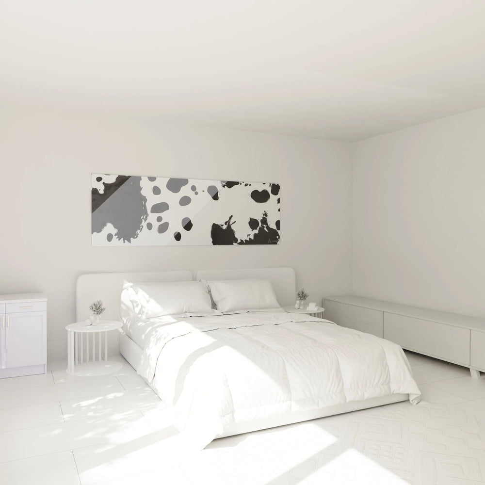 Cette art mural abstrait monochrome exploite la puissance expressive du contraste pour créer une tension visuelle palpable. Les tonalités intermédiaires adoucissent les transitions les plus brutales, offrant une richesse chromatique inattendue dans cette apparente simplicité. L'harmonie naît de cette opposition maîtrisée entre lumière et obscurité.