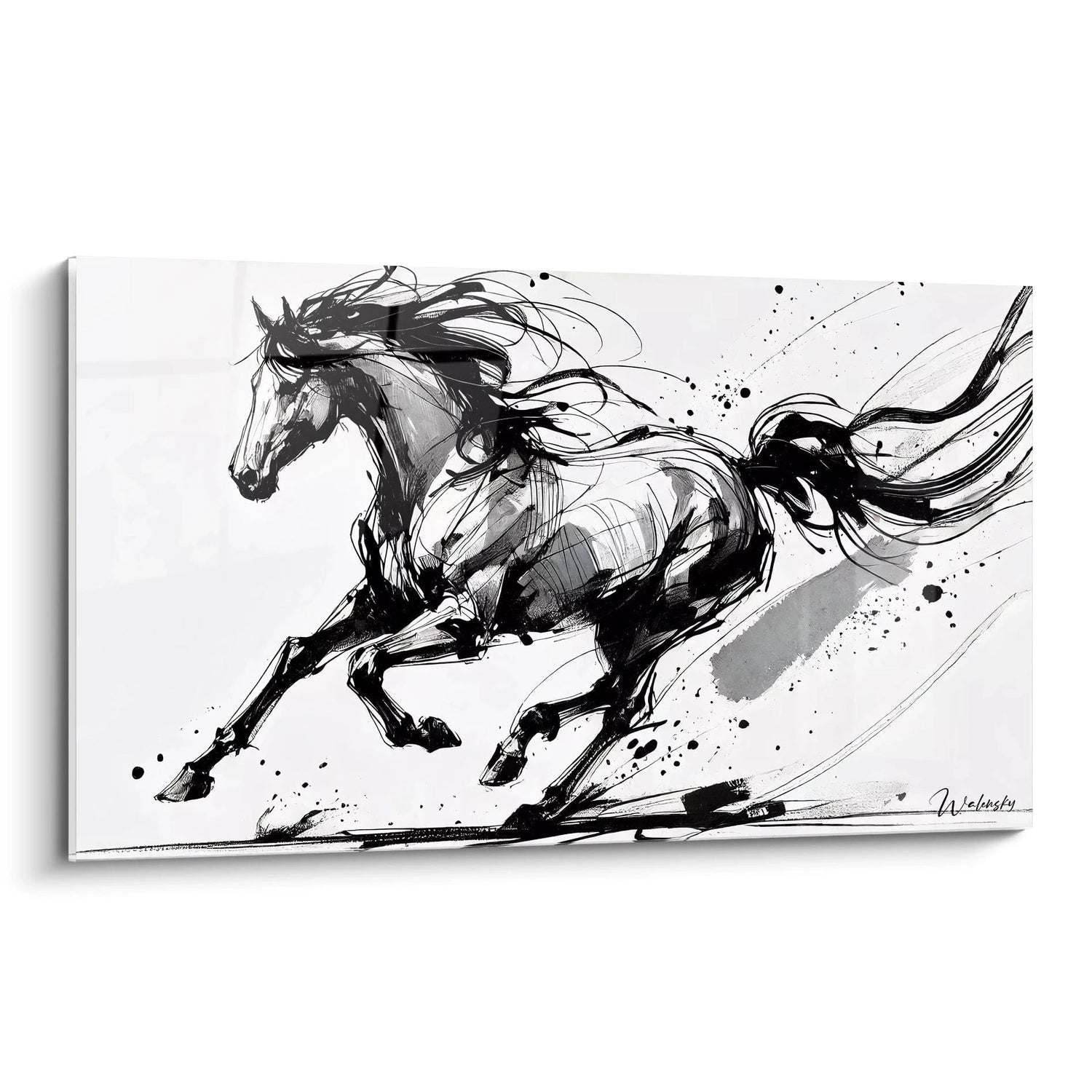 Ce tableau transcende la simple représentation animale pour devenir une véritable ode à la liberté et à la puissance. À travers des nuances profondes de noir et de gris, chaque coup de pinceau traduit un équilibre subtil entre tension et lâcher-prise, intensité et sérénité. Il évoque cette profonde connexion entre force sauvage et élégance naturelle qui captivera votre regard à chaque instant.