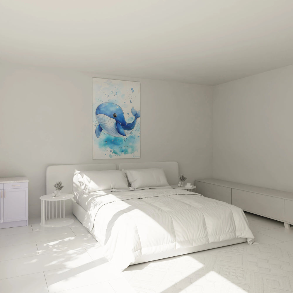 DĂ©couvrez une Ćuvre dâart unique qui transforme lâespace de votre enfant en un havre de douceur et dâĂ©merveillement. Le Tableau enfants N°12 - Edition Enfants incarne la magie du monde sous-marin avec une dĂ©licatesse rare, rĂ©vĂ©lant une petite baleine souriante qui semble danser dans les flots paisibles.