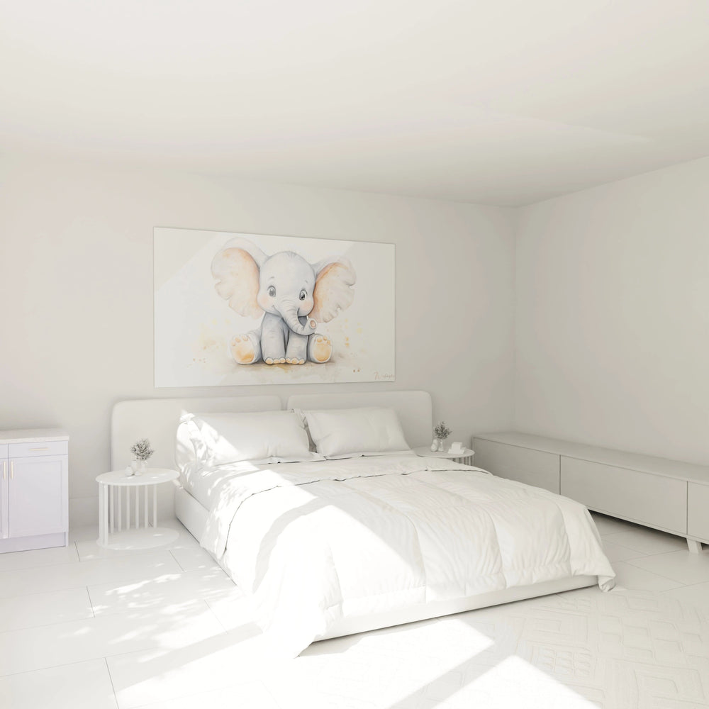 Imaginez une Ćuvre qui, au premier regard, invite Ă la rĂȘverie et Ă la sĂ©rĂ©nitĂ©, un tableau pensĂ© pour insuffler Ă la chambre de votre enfant une atmosphĂšre chaleureuse et rĂ©confortante. Le Tableau enfants N°3 - Edition Enfants est bien plus quâune simple dĂ©coration murale ; câest un vĂ©ritable havre de paix visuel, oĂč un petit Ă©lĂ©phant, dĂ©licatement peint, incarne lâinnocence, la sagesse et la douceur.