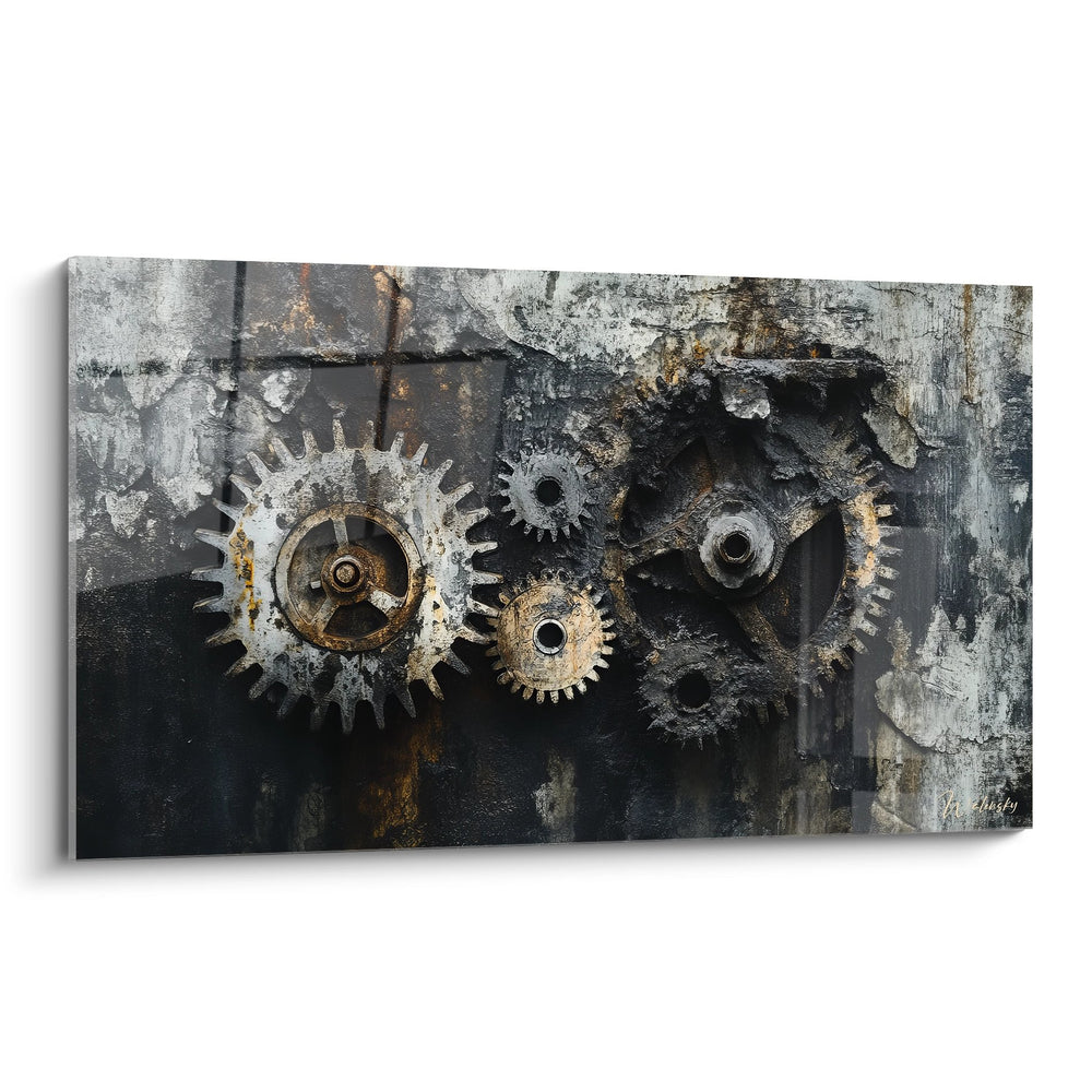 Tableau engrenages industriels patinés - Mécanisme temporel - édition machines et engrenages