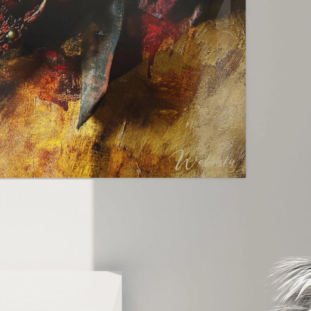 Imaginez ce chef-d’œuvre posé sur votre mur, capturant instantanément l’attention de vos invités. Le rouge intense évoque la passion et la vitalité, tandis que l’or rayonne d’un éclat royal, apportant lumière et chaleur à la pièce. Chaque nuance a été choisie avec soin pour créer une ambiance à la fois dramatique et raffinée, où tradition et modernité se rencontrent.