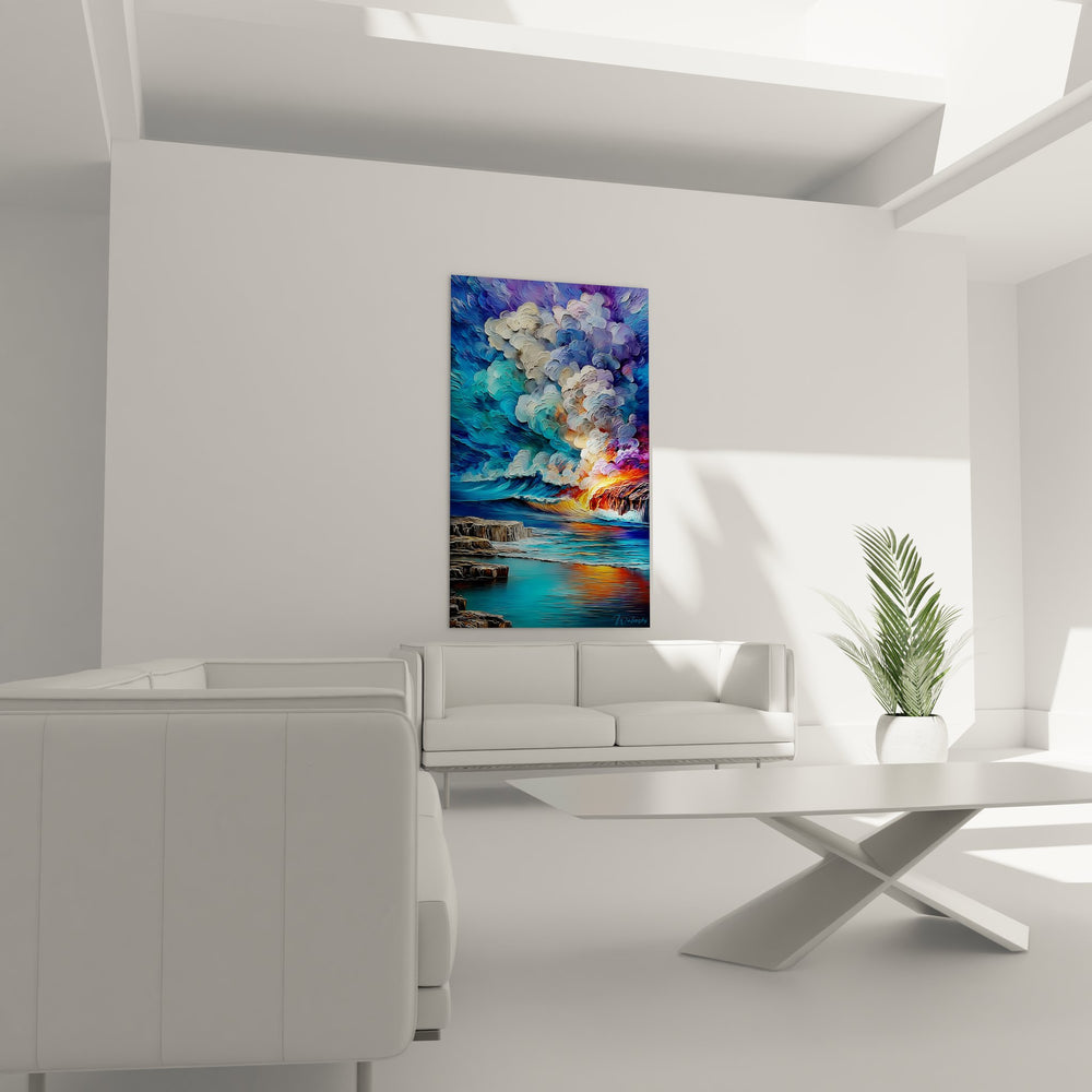 Tags : tableau volcanique, éruption marine, art géologique, décoration nature, paysage dramatique