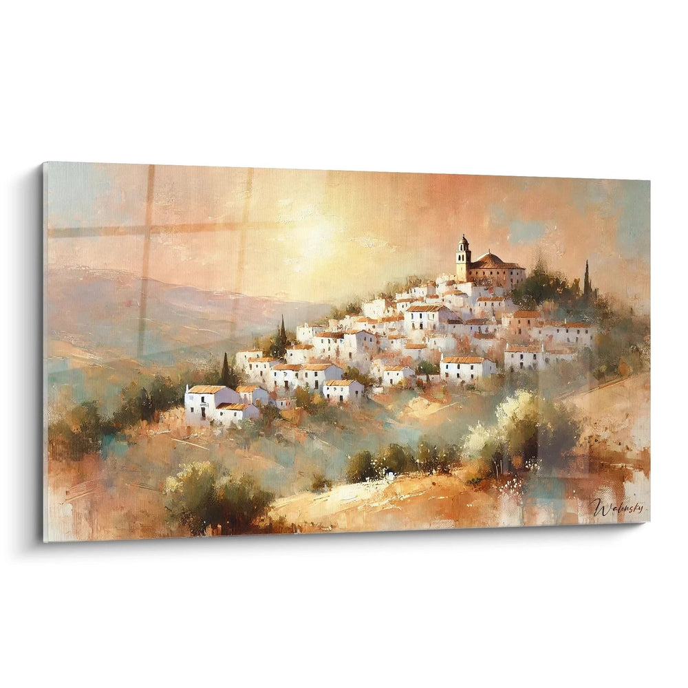 Cette œuvre est bien plus qu’une simple décoration : c’est une fenêtre ouverte sur les ruelles blanches baignées par la lumière naturelle, où chaque détail raconte une histoire de sérénité et de charme intemporel. Les teintes beiges, orangées et blanches s’entrelacent avec grâce, capturant la magie des après-midis paisibles et des villages de charme nichés au cœur des paysages méditerranéens.