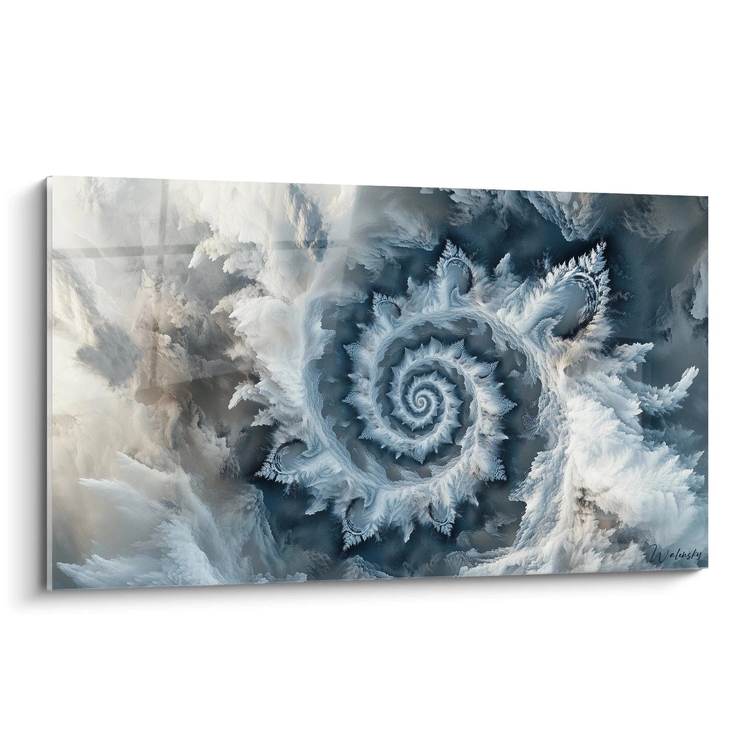 Découvrez ce tableau spirale glaciale extraordinaire qui capte immédiatement l'attention par sa structure tourbillonnante hypnotique. Cette œuvre fascinante présente un motif central en spirale parfaite qui semble émerger d'un univers glacé et éthéré. La composition évoque un phénomène naturel cristallisé dans un instant d'éternité, où chaque détail fractal contribue à l'harmonie globale du tableau spirale avec texture givrée.