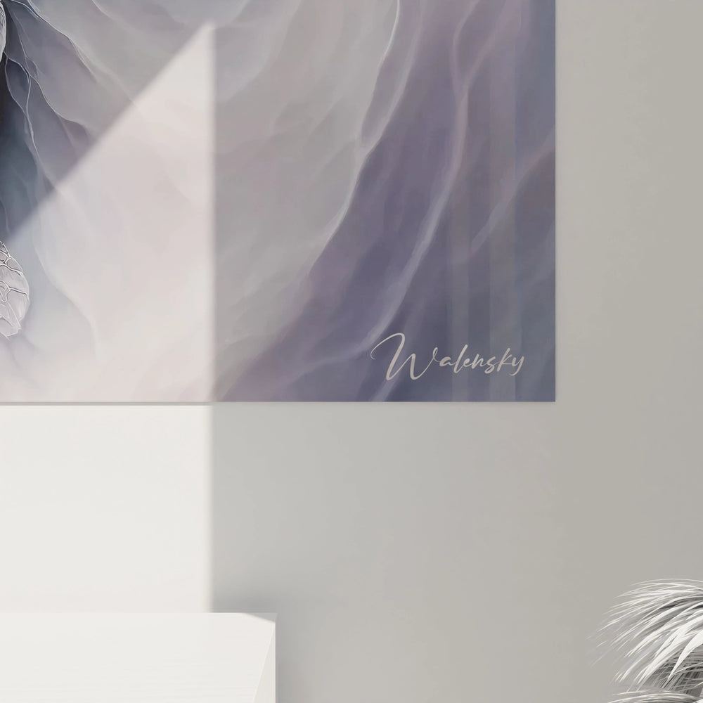 Associez ce tableau à des matières naturelles comme le bois clair ou aux accessoires aux reflets argentés pour rappeler la carapace luminescente. Choisissez des textiles aux teintes délicates et une décoration minimaliste qui laisseront toute la place à l’émotion que dégage cette œuvre et à son ambiance apaisante.