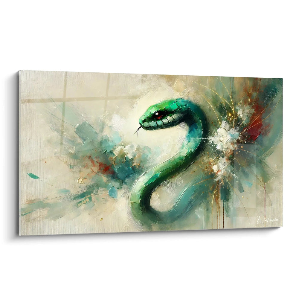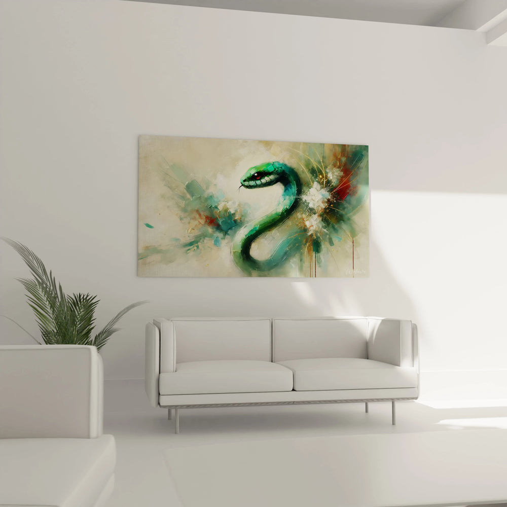 Immergez-vous dans un univers où la nature révèle toute sa puissance et sa poésie grâce au Tableau Éveil de l'Émeraude. Cette création unique incarne l'énergie mystique du serpent, un symbole millénaire de transformation et de renaissance, magnifiquement capturé au cœur d’une explosion de verts vibrants et de nuances subtiles. Ce tableau transcende le simple décor pour devenir un véritable appel à la contemplation, une invitation à ressentir la force vivante qui anime votre intérieur.