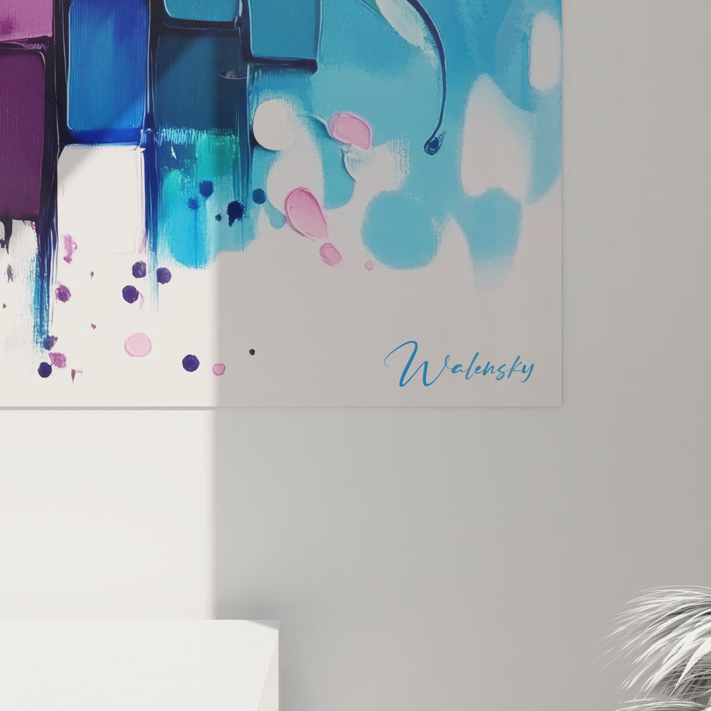 Cette œuvre d'art contemporaine présente une composition dynamique où l'explosion de couleurs se matérialise à travers des formes géométriques tridimensionnelles. Le tableau mural multicolore déploie un spectre chromatique complet, des roses vibrants aux bleus profonds, en passant par des jaunes éclatants et des violets intenses. Les cubes colorés semblent flotter dans l'espace, créant un effet de profondeur saisissant qui transforme votre mur en une fenêtre vers un univers artistique fascinant. Cette peinture abstraite moderne capture l'essence même du mouvement et de l'énergie à travers ses projections latérales qui évoquent des éclaboussures liquides figées dans le temps. Les formes géométriques colorées s'organisent selon une symétrie parfaite, créant un équilibre visuel harmonieux malgré l'apparent chaos chromatique. Chaque élément de cette décoration murale contemporaine a été pensé pour créer une sensation de mouvement perpétuel, comme si les couleurs jaillissaient directement de la toile pour envahir l'espace environnant. L'artiste a masterisé la technique du mélange de couleurs abstraites pour produire des transitions subtiles et des contrastes marqués qui captent immédiatement l'attention du spectateur.