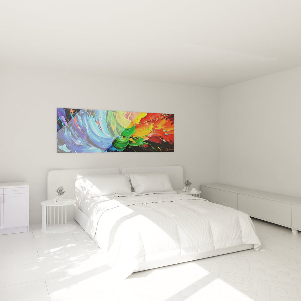 Tags : explosion couleurs, art abstrait, peinture moderne, décoration murale, tourbillon chromatique