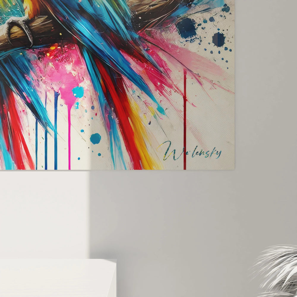Placez ce chef-d’œuvre dans votre salon, votre espace créatif ou même une chambre, et laissez-le rayonner. Il devient instantanément le cœur visuel de la pièce, attirant les yeux et suscitant l’admiration de vos invités. Son énergie positive élève votre décor tout en racontant une histoire d’harmonie entre liberté sauvage et splendeur naturelle.