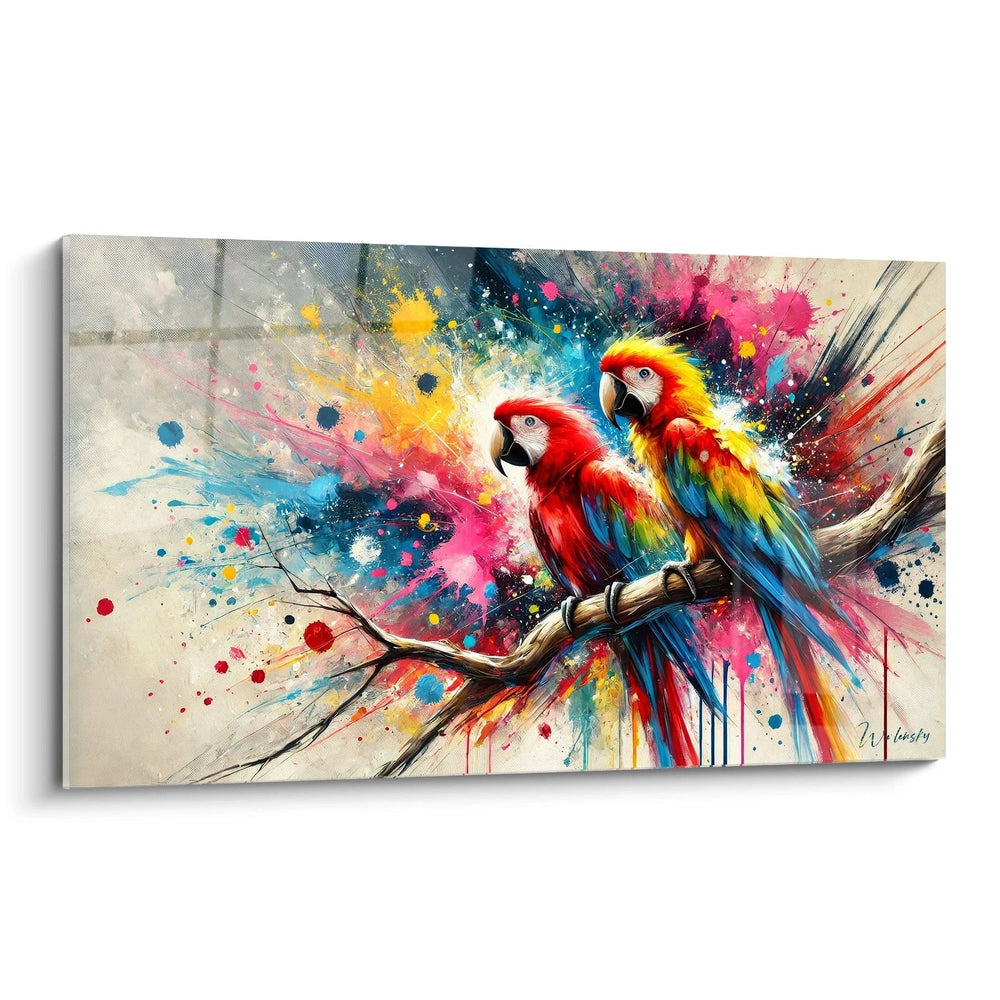 Vous cherchez à insuffler une atmosphère unique et raffinée à votre intérieur ? Ce tableau vous offre une explosion de rouge, jaune et bleu, fusionnés dans une danse de nuances éclatantes qui capturent la lumière et attirent le regard. Perchés sur leur branche, les perroquets multicolores deviennent les héros d’une fresque animée, où chaque éclat semble rayonner d’une énergie contagieuse qui anime la pièce.