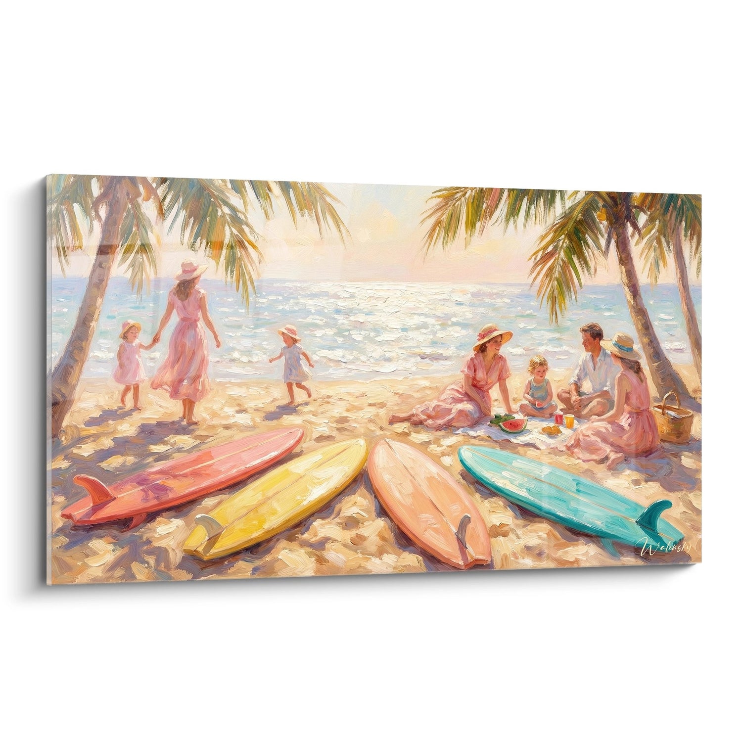 Tableau Famille à la Plage avec Planches de Surf - Paradis Tropical - Edition Surf