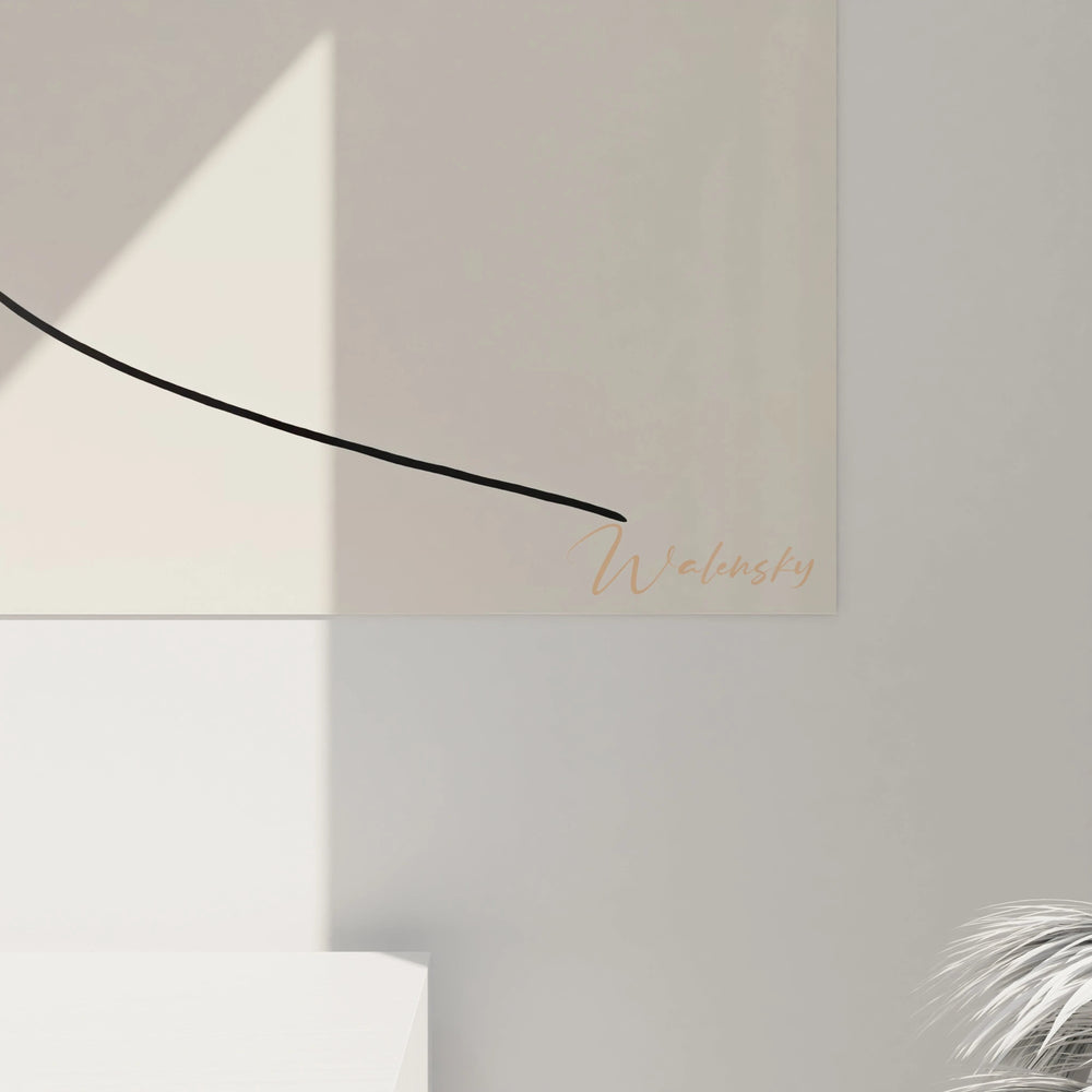 Songez à un souffle léger, à cette caresse presque imperceptible du vent qui effleure la peau. Ce tableau est né de cette inspiration : figer un instant de quiétude, de légèreté et d’équilibre. Les traits épurés s’entrelacent avec fluidité, évoquant la nature et le mouvement tranquille d’une feuille portée par une brise douce. Il ne s’agit pas seulement d’un simple visuel, mais d’un véritable refuge visuel qui invite à la sérénité.